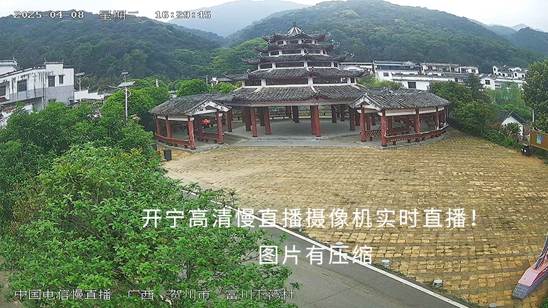 在桂东北的群山褶皱里,广西贺州富川瑶族自治县下湾村枕着贺江支流的碧波已逾千年。这里既有喀斯特地貌的嶙峋风骨,又有江南水乡的温润灵秀——村口三棵千年古榕虬枝探向江面,树影在清水中摇曳;明清时期的青石板路穿村而过,尽头便是承载着全村烟火气的同心文化广场。如今,开宁全彩高清慢直播摄像机与中国电信5G网络携手,将广场及周边的江风、古榕、瑶家风情实时传递至全网,让这座藏着历史密码与自然之美的村落,以“原生态直播”的形式走出大山,成为数字乡村建设中“文化传承+风景传播”的典型样本。