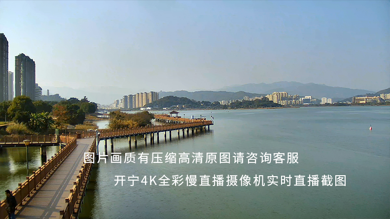 开宁4K全彩高清慢直播雨刷智能球机的应用,精准破解了这些难题。慢直播设备搭载的4K超高清成像技术,能细腻还原南北岸的细节质感——滩涂的肌理纹路、绿植的鲜润色泽、桥梁的建筑线条,连水波荡漾的弧度都清晰可辨,让屏幕前的受众仿佛置身岸线观景台。