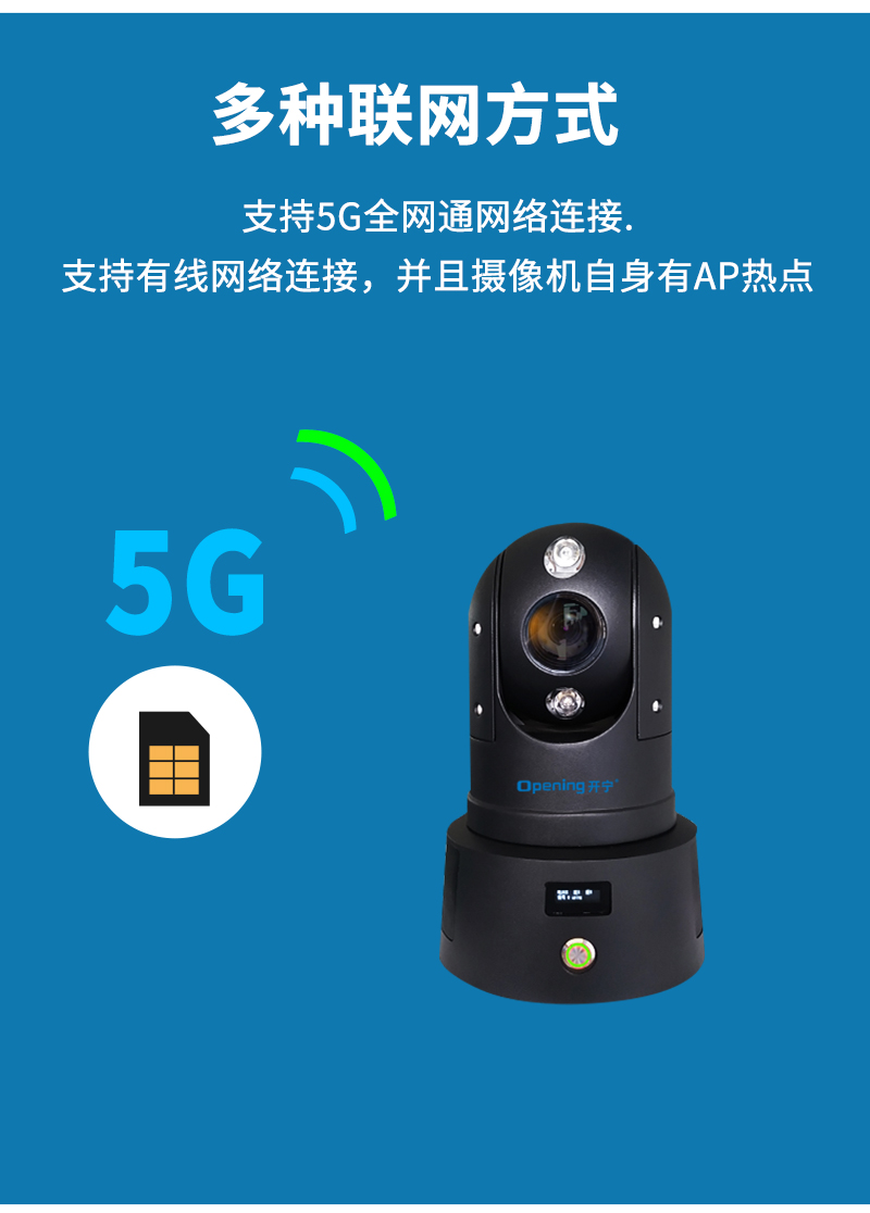 2、内置工业级智能5G模块,没有宽带网络的地方也能实现实时慢直播;